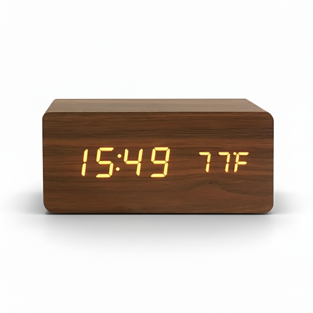 tart your day with simplicity and style. WoodAlarm combines a modern LED display with a natural wood design, making it a practical and elegant addition to any bedroom or workspace.