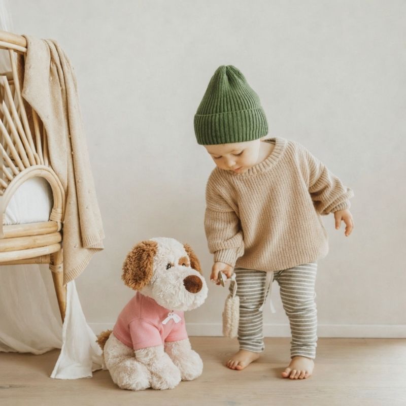 We focus on calm over chaos. Our plush toys have no batteries, no sounds, and no flashing lights — just soft, simple comfort designed for quiet play and cozy moments.