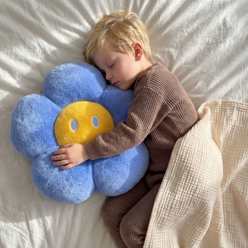 Our stefania — blue flower (60cm) is oversized, impossibly soft, and made for sinking into. Big enough to hold onto through anything — a real presence in the room.