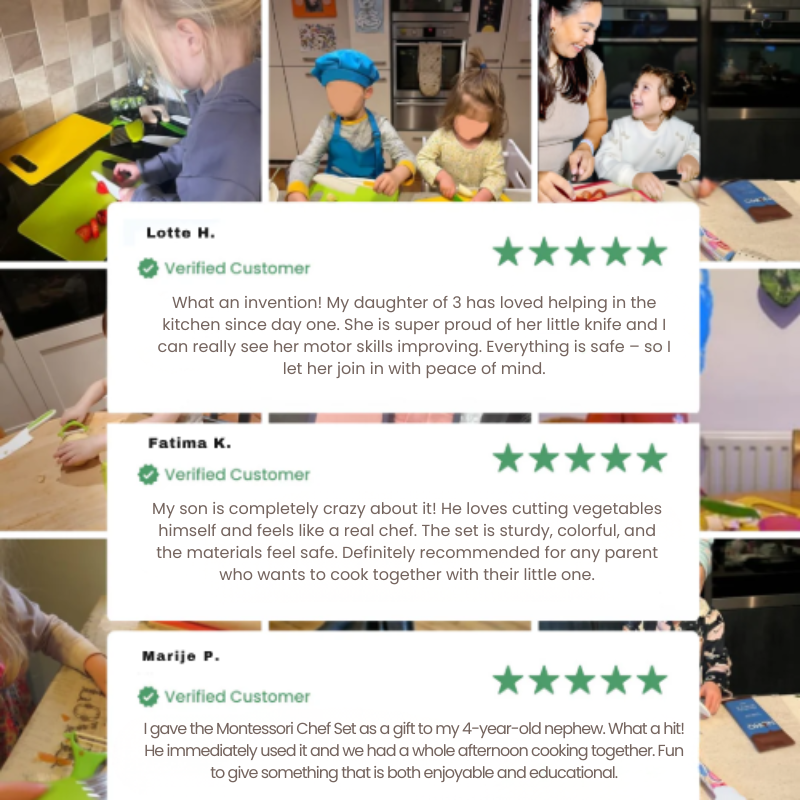 Each tool is carefully designed to be usable yet adapted for toddlers. The durable, BPA-free materials and rounded edges make it suitable for supervised family cooking moments while supporting creativity and independence.